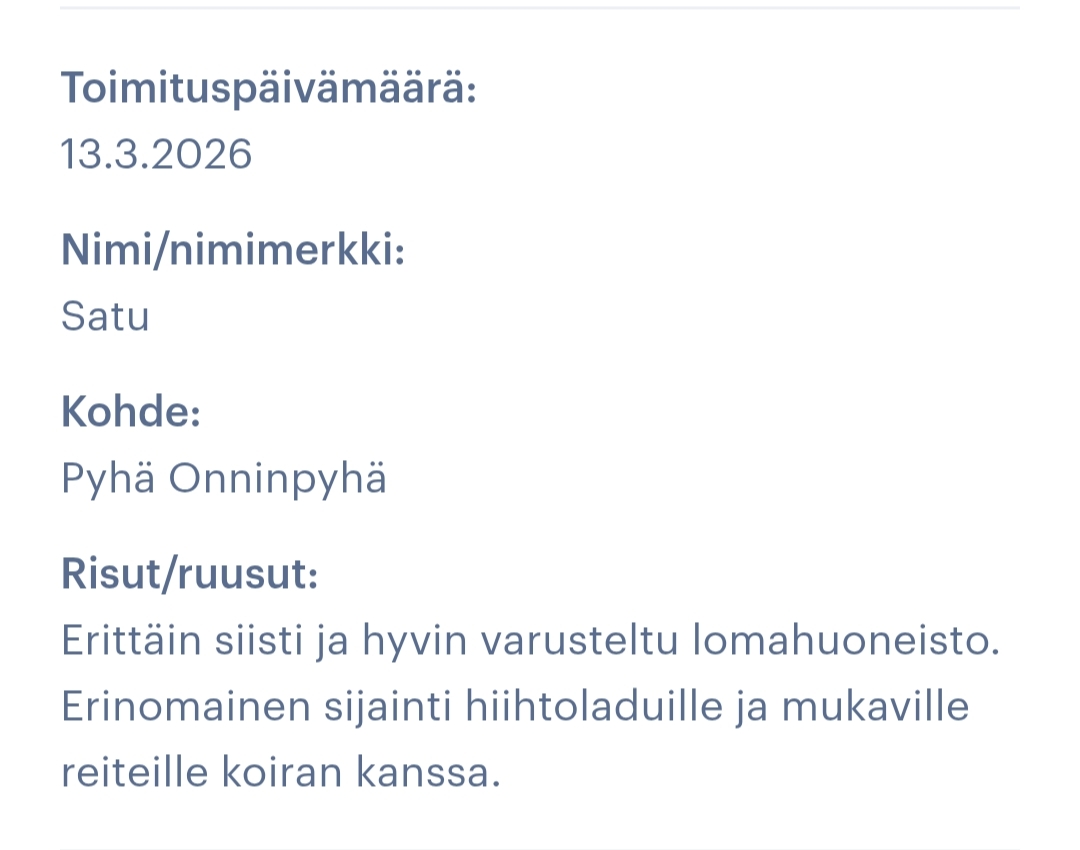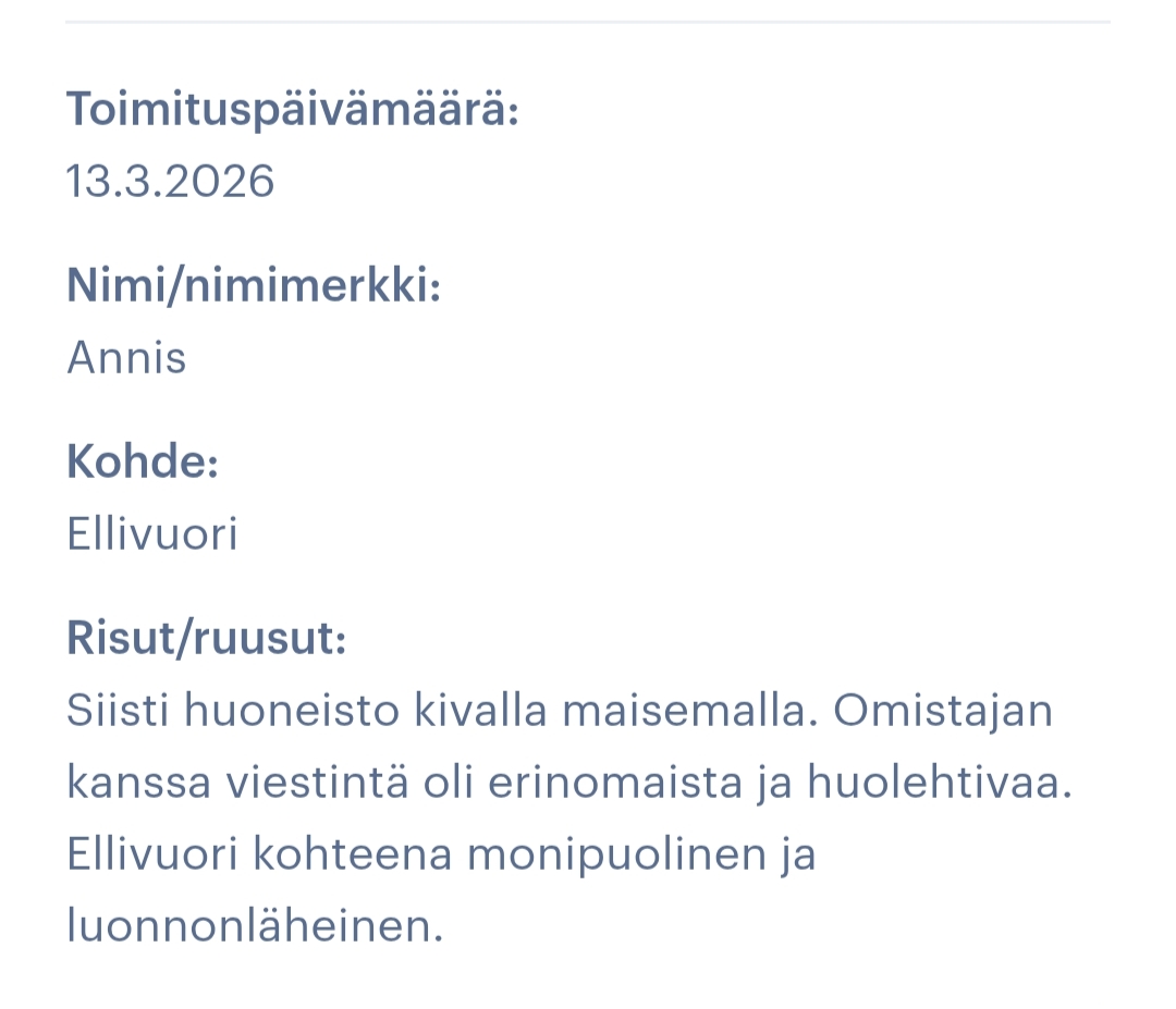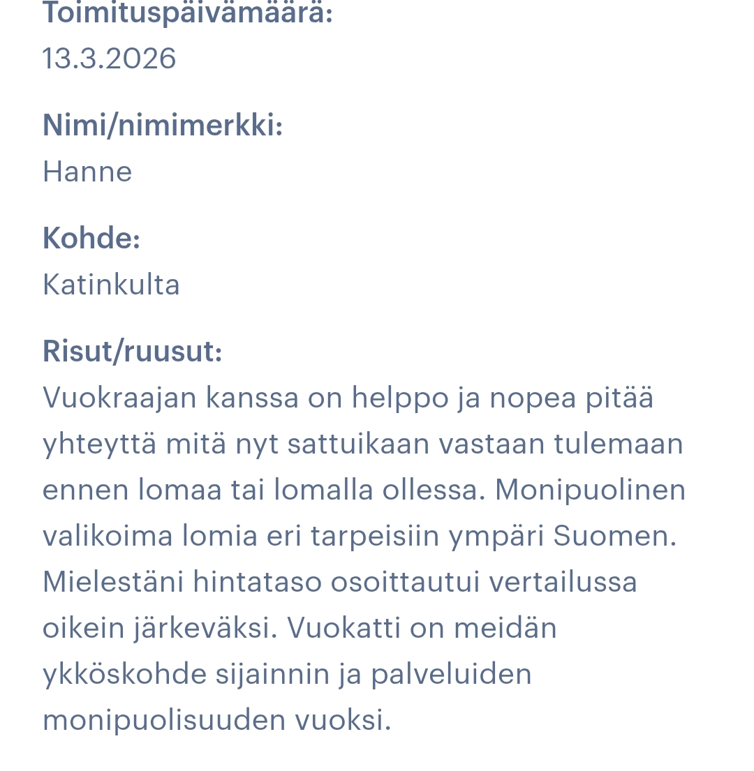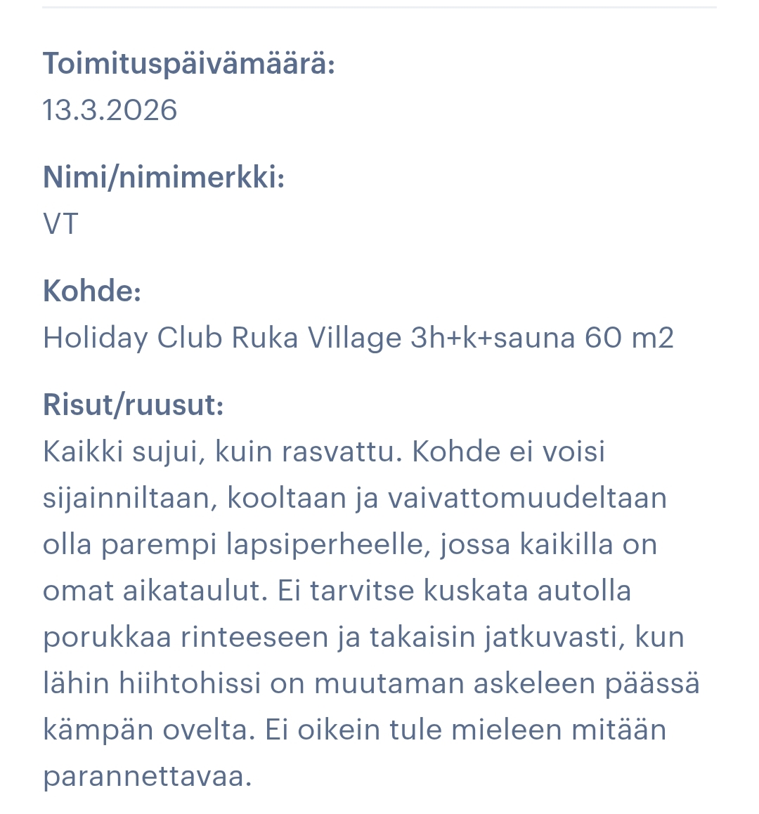 Kiitos kun vaivaudut antamaan meille palautetta:)